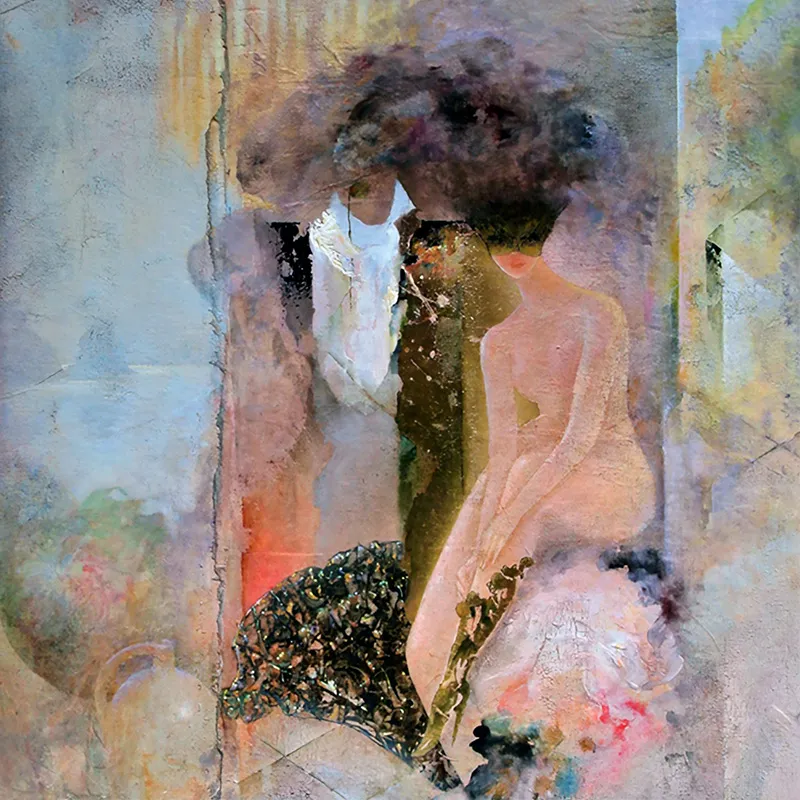 Danila Igorevich Zhirov was born in Moscow in 1950. One year after his birth, the Moscow State University for the Humanities named after Sholokhov was founded—the institution where Danila Igorevich would later study. And, characteristically, he studied not just anything, but the craft of working with icons (to be precise, he trained as an icon restorer), which is easily discernible in his style. Note the very interesting technique of his works: nothing more than canvas, levkas (a traditional material of icon painting), and oil.