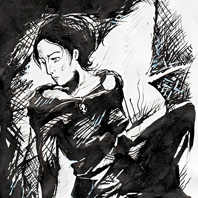 Ksenia was born in Krasnoyarsk in 1992. At the age of sixteen—and with no formal art training—she produced the following ink-and-white illustrations for The Master and Margarita (ink, dip pen, brush, white highlights).