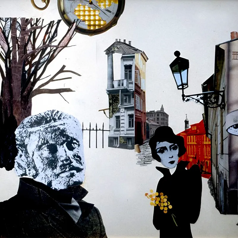 Oleg Nikolaevich Grachev was born in Moscow in 1945. He became interested in collage in the early 1970s—just after the first publication of The Master and Margarita. Riding the wave of interest in the novel, the artist created a series of illustrations for it. In 1978, Oleg Nikolaevich showed them to David Borovsky, the set designer of the Taganka Theatre, where the first stage production based on The Master and Margarita had already been mounted. Yuri Lyubimov saw the illustrations, and within the walls of the theatre the idea arose to organize an exhibition of illustrations to the novel by various artists—an idea that, unfortunately, was never realized.