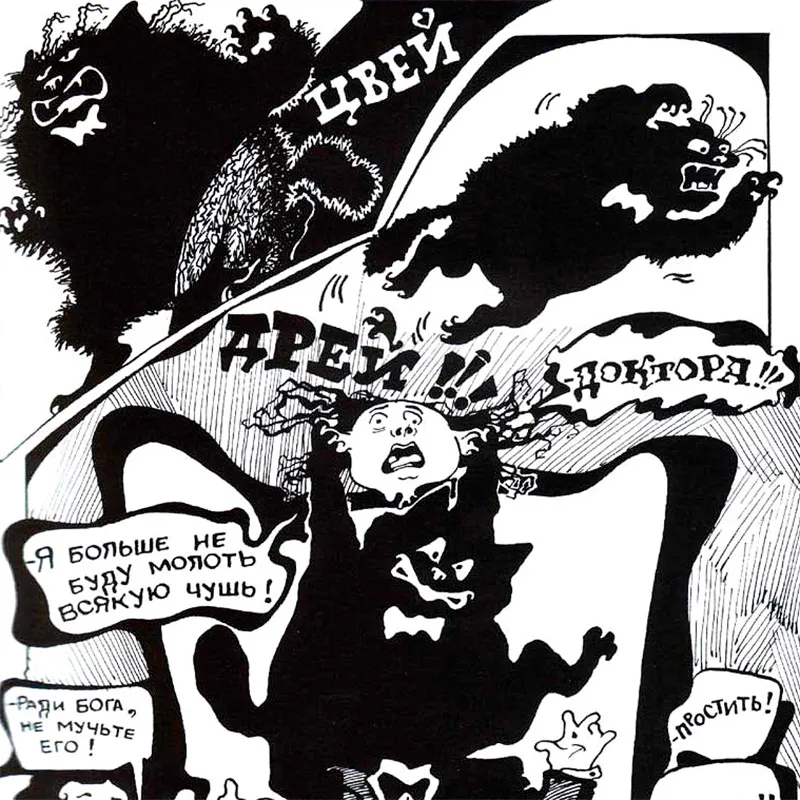 Generally speaking, the idea of making a comic strip out of The Master and Margarita strikes me as… bold, to put it mildly. To dare to condense the novel into a few dozen panels with speech bubbles? The artist Rodion Tanaev has tried, yet even he couldn’t do without long blocks of text (and who could?). Be that as it may, let a hundred flowers bloom—the more varied illustrations of Bulgakov’s novel, the better, right?