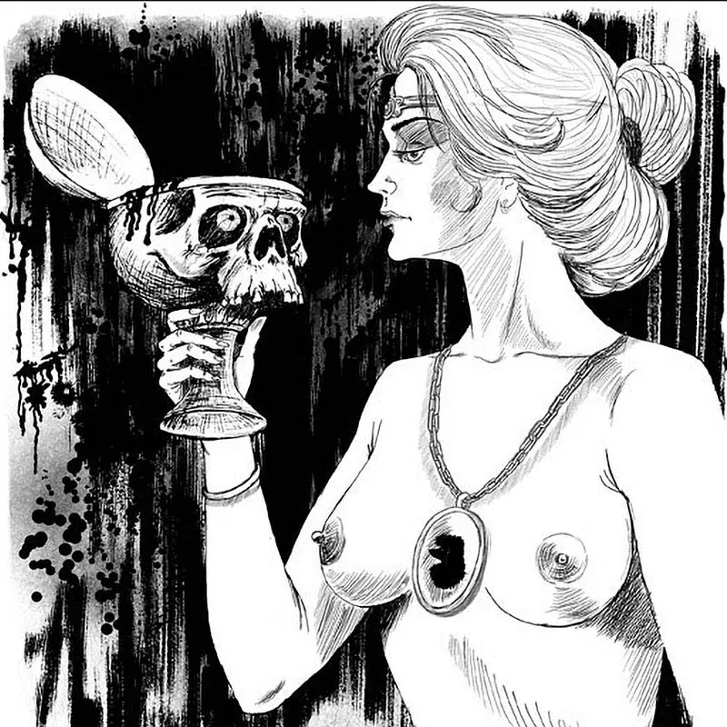 “...The professor turned to the table and instantly let out a cry. Seated there, in a nurse’s kerchief, was a woman with a handbag bearing the word ‘Leeches.’ The professor howled when he looked into her mouth. It was a man’s mouth, crooked, reaching to the ears, with a single fang. The nurse’s eyes were dead.”
